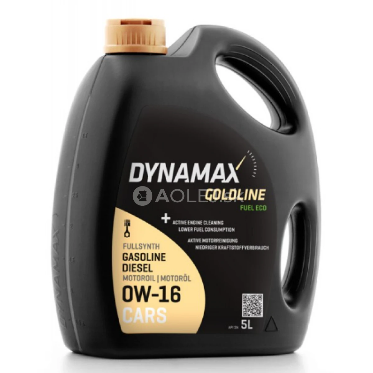 Dynamax Goldline Fuel Eco 0W-16 je vysoko kvalitný plnesyntetický motorový olej určený na použitie v benzínových a dieselových motoroch osobných automobilov vybavených s alebo bez turbopreplňovania a priameho vstrekovania. Olej je špeciálne vyvinutý pre hybridné motory. Vyznačuj e sa vynikajúcim štartom za studena a minimalizáciou spotreby paliva, trenia a opotrebenia.