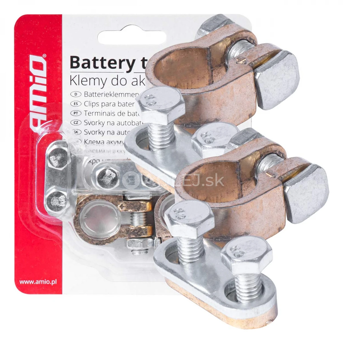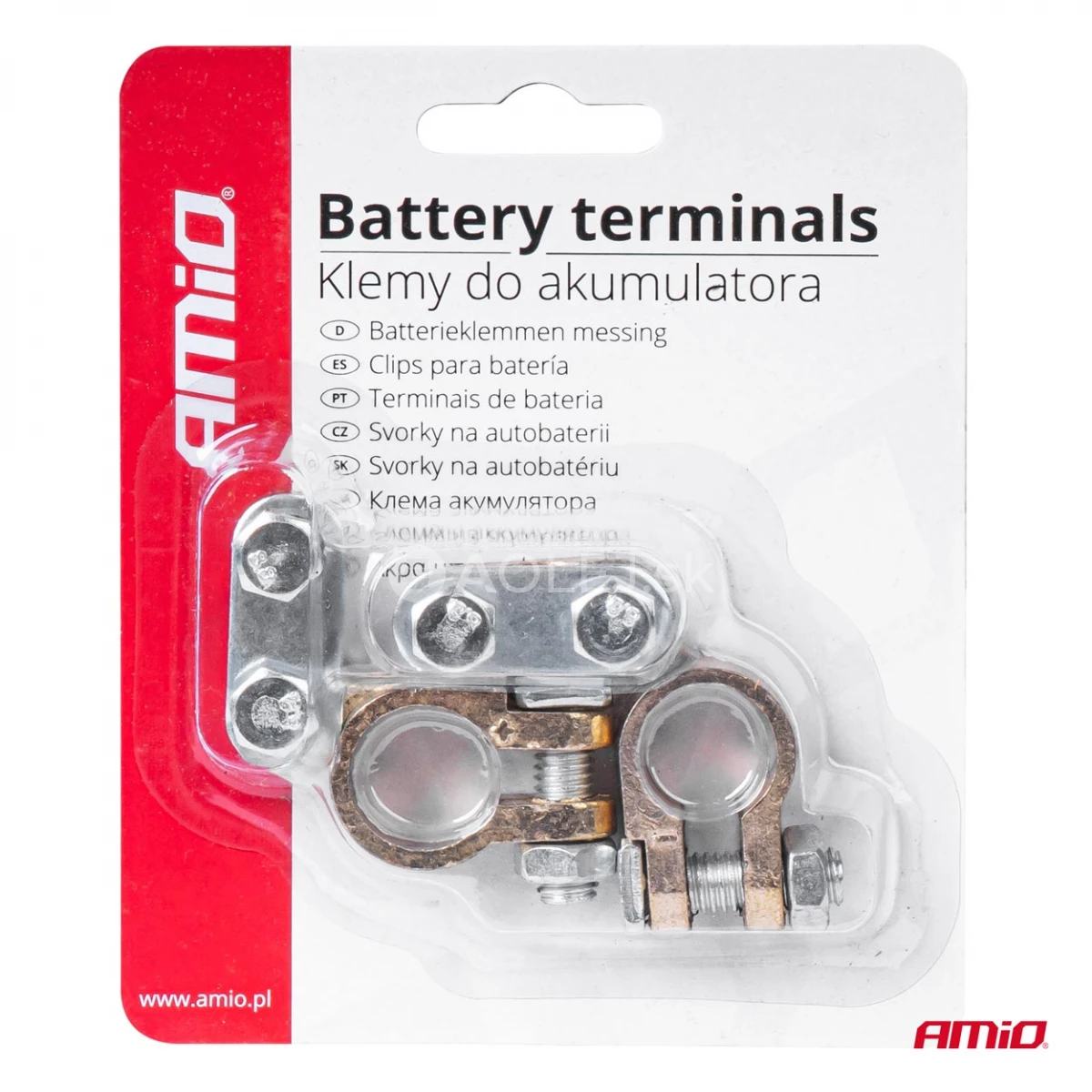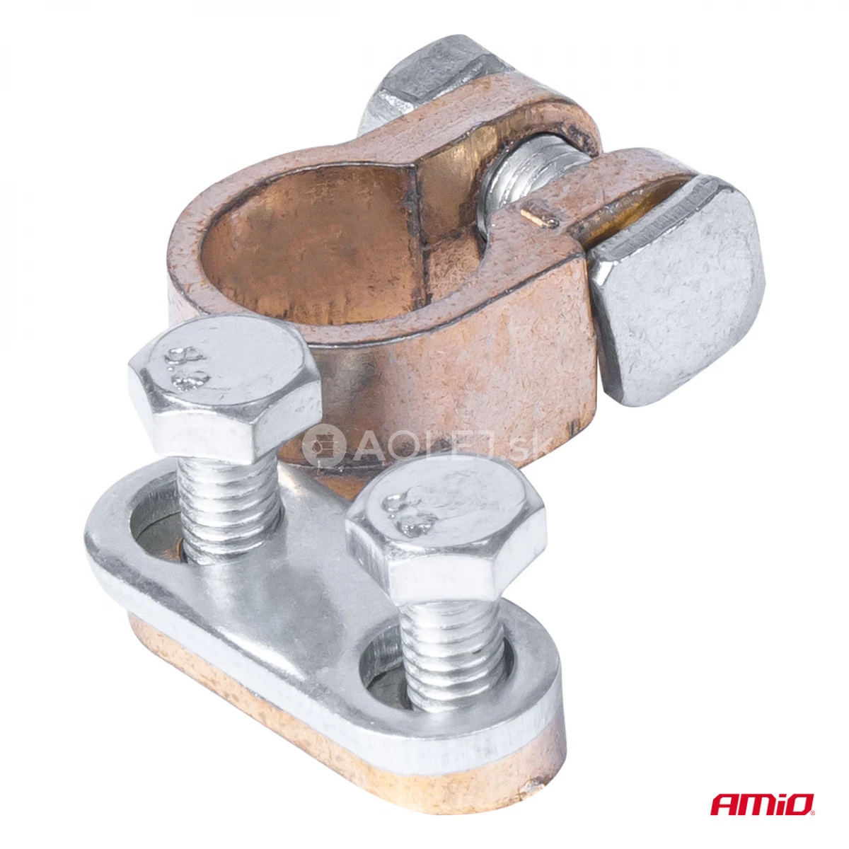 Auto svorky batériové mosadzné plusová a mínusová. Svorky sú vhodné pre osobné automobily, na prierez kábla 10-25mm2.