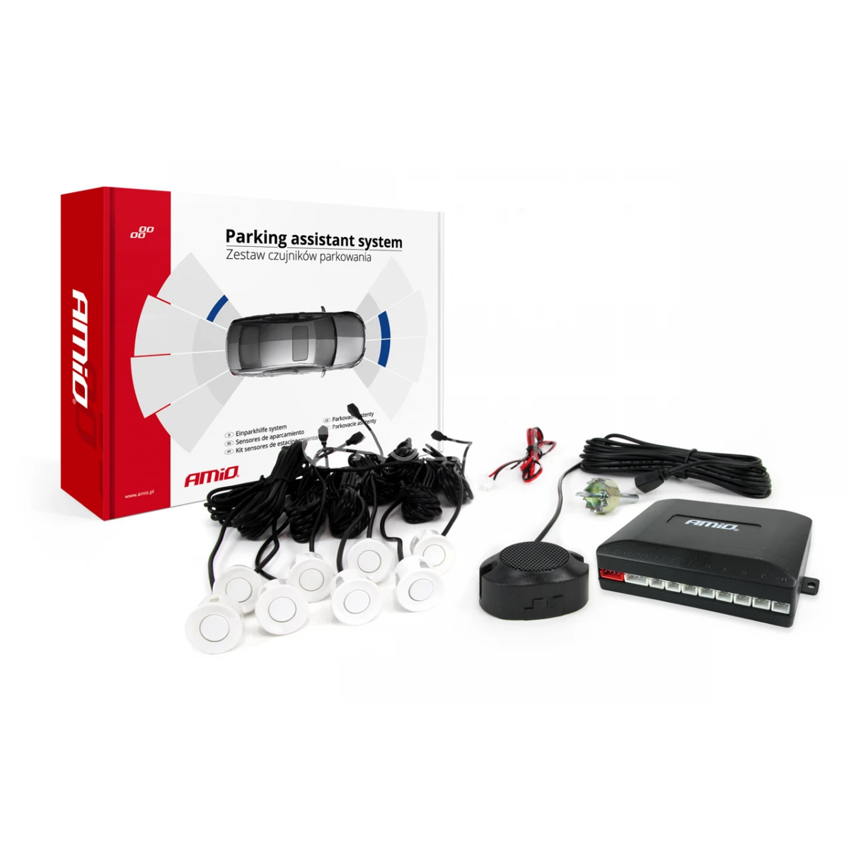 Parkovací asistent je zariadenie, ktoré podporuje parkovanie a cúvanie vozidla. Pracuje na princípe sonar - vyžaruje ultrazvukové vlny, ktoré, keď sa odrážajú od prekážky, umožňujú určiť vzdialenosť medzi vozidlom a prekážkou. Počas cúvania prístroj správne rozpozná prekážky v dráhe vozidla a upozorní vodiča signalizáciou zvukom. Bzučiak môže pracovať v 3 režimoch zvuku: vysoký, nízky a úplne stlmený. Zmena režimu prepínačom na kryte. Súprava obsahuje: 8 senzorov senzorov bielych o 22mm 4 predlžovacie káble Bzučiak - vydáva zvukové signály 8-senzorová riadiaca jednotka-centálka (A-D zadný, E-H predný) Pílový otvor na vŕtanie otvorov v nárazníku Návod na montáž úplná špecifikácia: Rozsah / citlivosť prevádzky 0-2,5m Napájanie 12V Prevádzková frekvencia 40KHz Pracovná teplota -30 ° C - +70 ° C